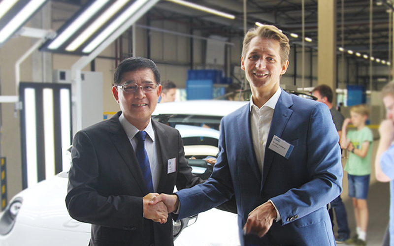 左:瑪吉斯輪胎總經(jīng)理李進昌 右:e.Go高級經(jīng)理Dr.Carlo Hausberg